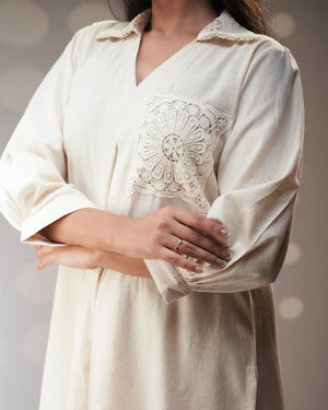 a refined and graceful off-white co ord set designed for subtle sophistication.