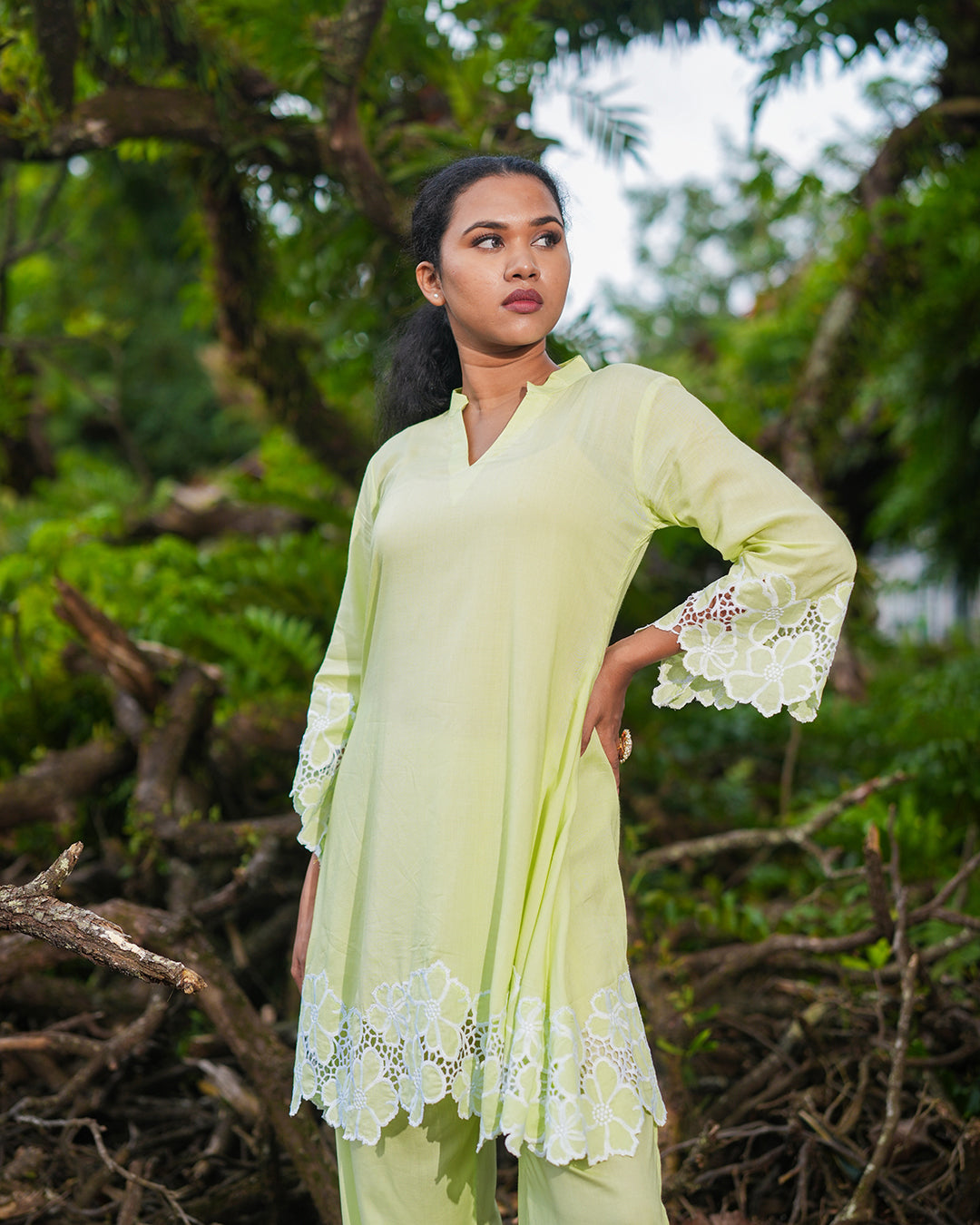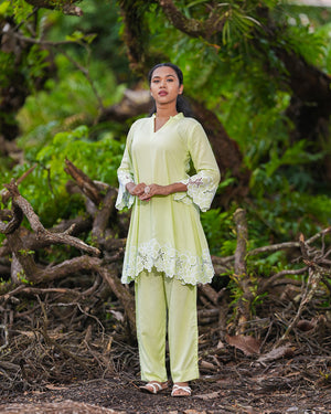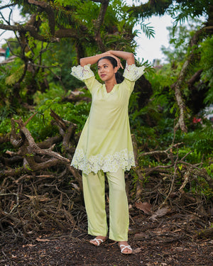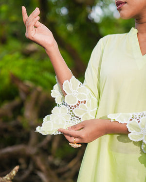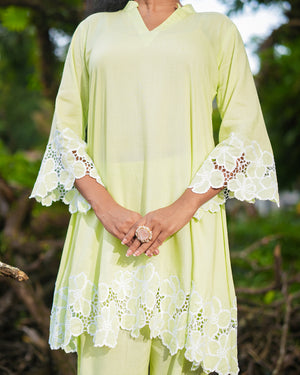 The kurta is beautifully finished with intricate cutwork lace detailing