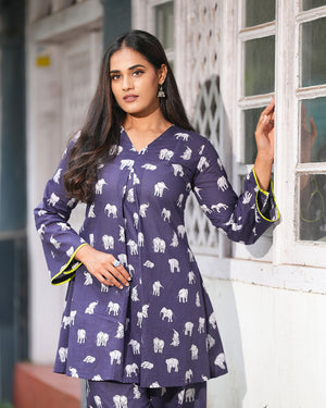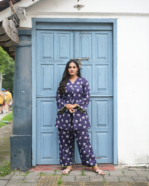 Bring a touch of playful elegance to your wardrobe with the Midnight Safari Co-ord Set.