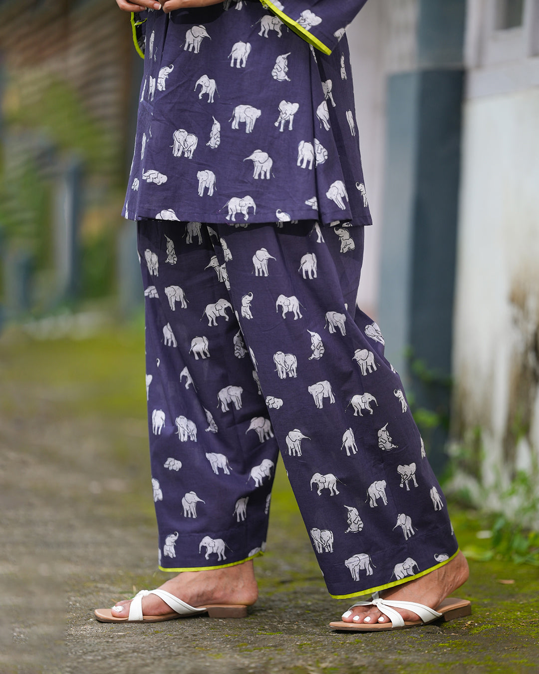 Designed in a rich indigo base with charming elephant prints,